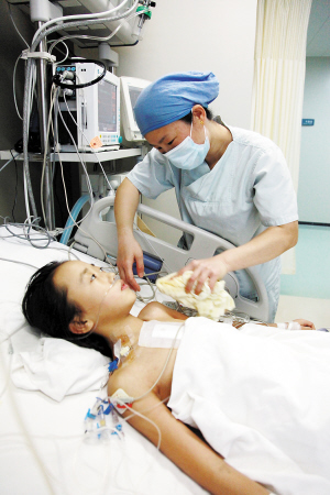 人民网·天津视窗11月19日电:铺床、擦身、洗头、洗脚、翻身、擦屎、端尿……这些又脏又累的繁琐工作是病榻前少不了的一套活,因此也才有“久病床前无孝子”的常言,而有一个人整日代他人尽心尽力一做就是八年。她就是今年38岁的天津市泰达国际心血管病医院重症监护室护理员梁志茹,昨天(18日)她接过了人力资源和社会保障部授予的“卫生行业护理员全国技术能手”证书,这是我国首次为护理员行业设立“全国技术能手”奖项,此次全国共两名护理员获此殊荣。
