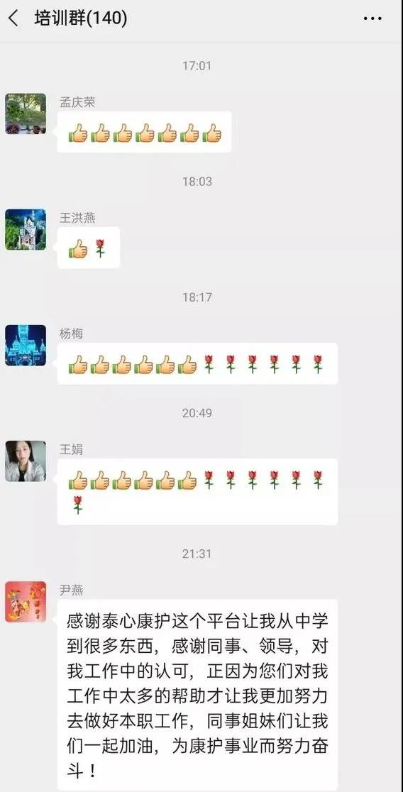 感谢“泰心”医院医务人员对泰心康护团队的肯定和鼓励,院方严慈相融的人性化管理,尊重人才,关爱员工,团结一心深化病区的无陪护管理文化深深的感动着每一个医院的合作方。