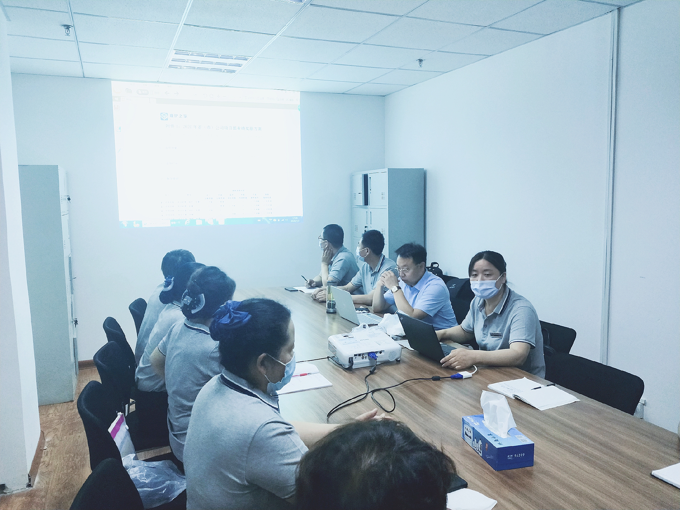 2020年7月3日下午18:00整,陕西省公司召开6月份运营分析会,康护之家副总经理黄海、陕西省总张艳红及项目全体管理人员出席会议。