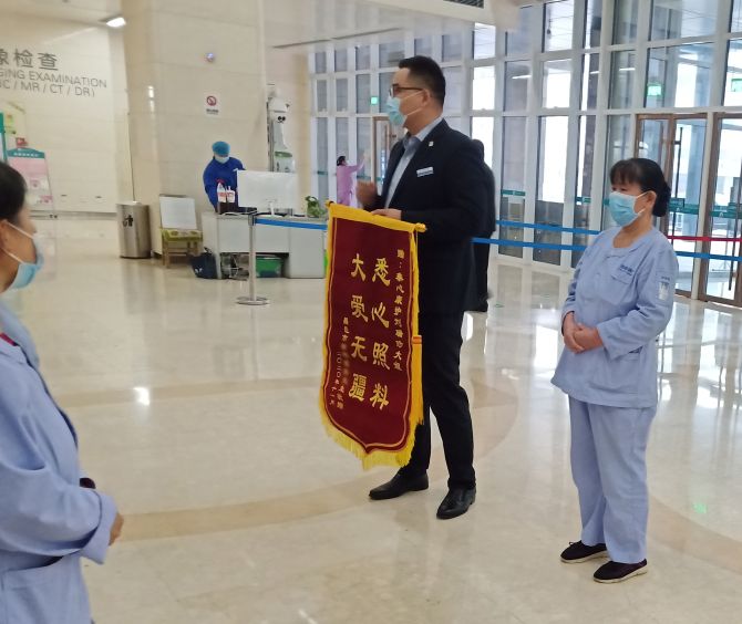 4. 受患者家属委托,向优秀护理员刘瑞珍颁发锦旗一面;