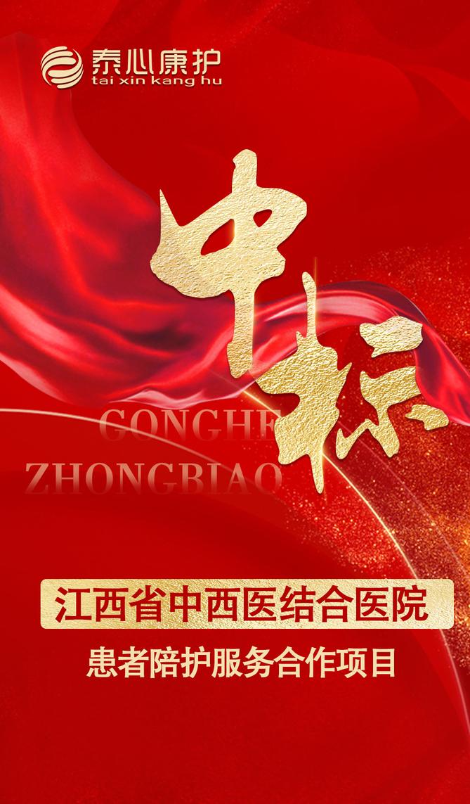 泰心康护《天津) 健康管理有限公司凭借精湛的技能和严谨的服务品质赢得了患者、家属与院方的高度认可,成功中标江西省中西医结合医院患者陪护服务合作项目。