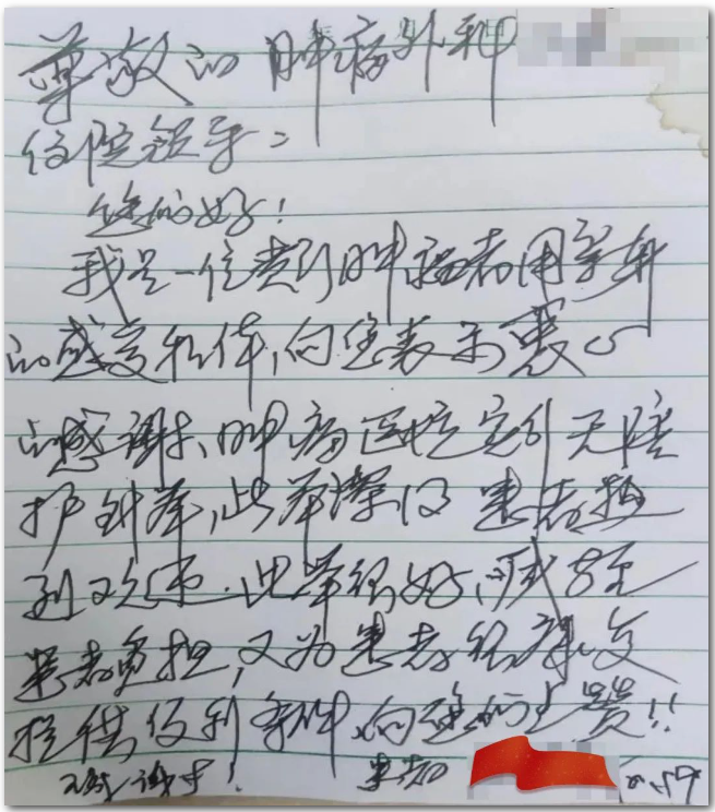 这封信来自福建省肿瘤医院胸部肿瘤外科的一位患者,信中虽只有寥寥几行文字,但却是患者内心最真实的感受,字里行间,充分表达了对“免陪照护”全体医护人员工作的肯定。