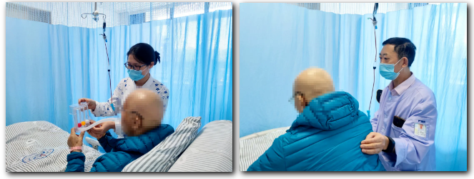 庄大爷(化名)在经历贲门癌根治术后,由于体质较弱,自主咳嗽和排痰的能力不足。在住院期间,泰心康护免陪照护人员积极介入,不仅为庄大爷提供了肺康复锻炼的指导,还定时帮助他翻身和拍背,指导他如何进行有效咳嗽和排痰,以及正确使用呼吸训练器。此外,护理人员还协助庄大爷在卧床期间进行双上肢的功能活动和踝泵运动等。随着病情的稳定,护理人员积极协助庄大爷下床进行活动,并在他身旁提供所需的陪伴。从日常生活的照料到康复训练,护理人员的关怀细致入微。